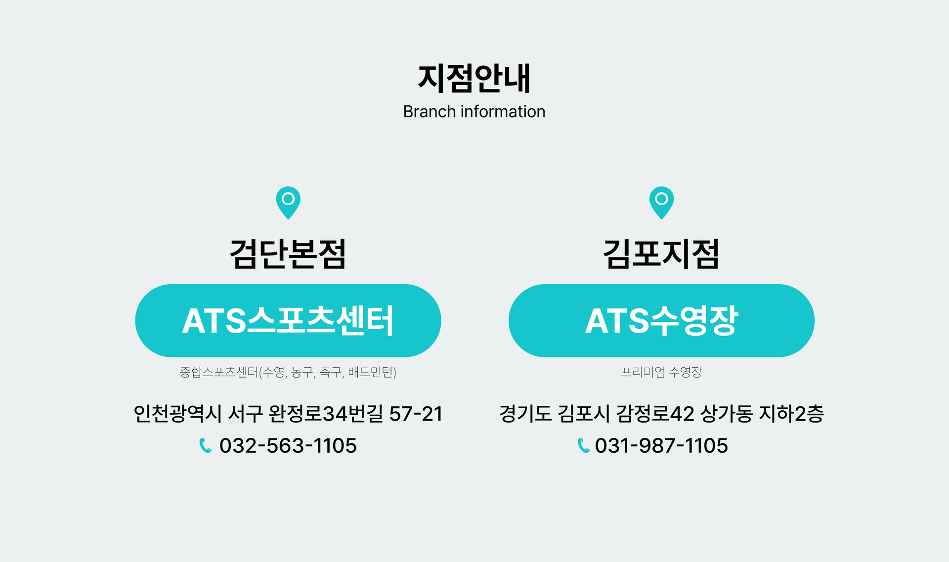 주소 : 인천 서구 완정로34번길 57-21 ATS스포츠센터